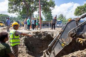 Díli, 19 Desembro 2025| Presidente Komisaun Ezekutiva EDTL, E.P, Dr. Paulo da Silva, akompaña husi Diretór Distribuisaun no Apoiu Konsumidor, Eng. Zil Nunes Pinto hamutuk ho tékniku sira vizita local projeto konstrusaun kabu eletrisidade subterrâneo Kuluhun-Bekora.