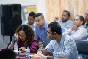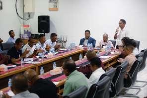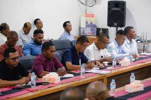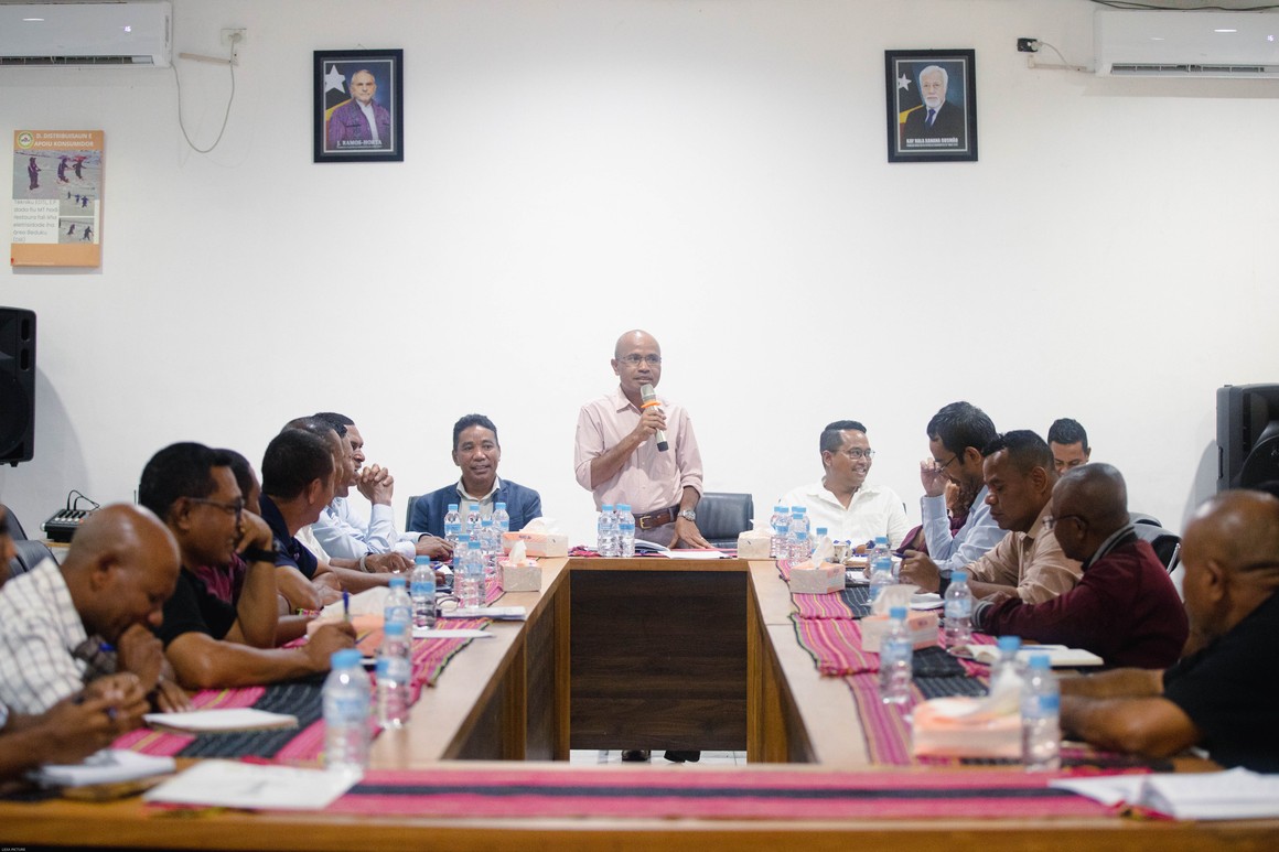 Díli, 13 - 01- 2025| Presidente Comissão Executiva, Dr. Paulo da Silva acompanha husi Comisário Executivo Serviço Técnico, Eng. Roberto Manuel Marçal no Comisário Executivo Serviço Corporativo, Júlio de Jesus Gonçalves, encontro gerál ho Diretores, Chefe de Divisão no Chefe de Unidades iha nível nacionál ho municipal sira hodi discute sobre plano preoridade sira ne’ebé sei implementa iha tinan ne’e.